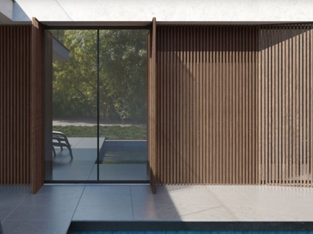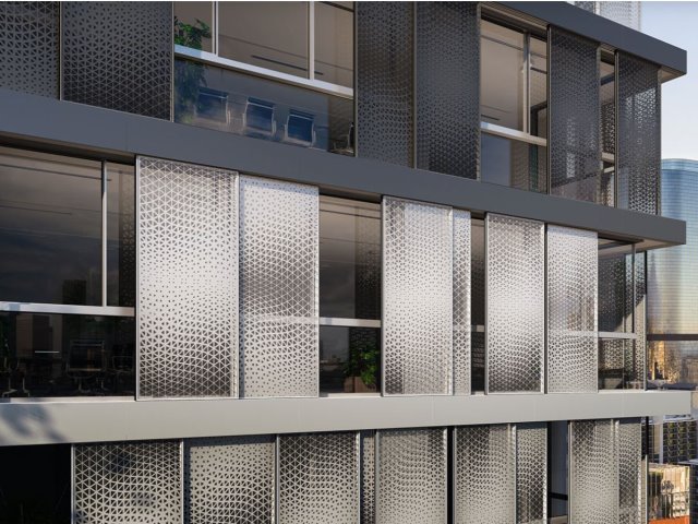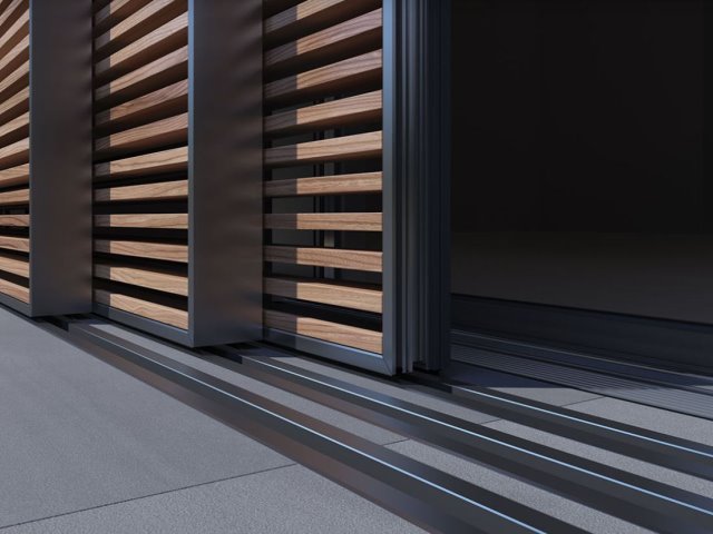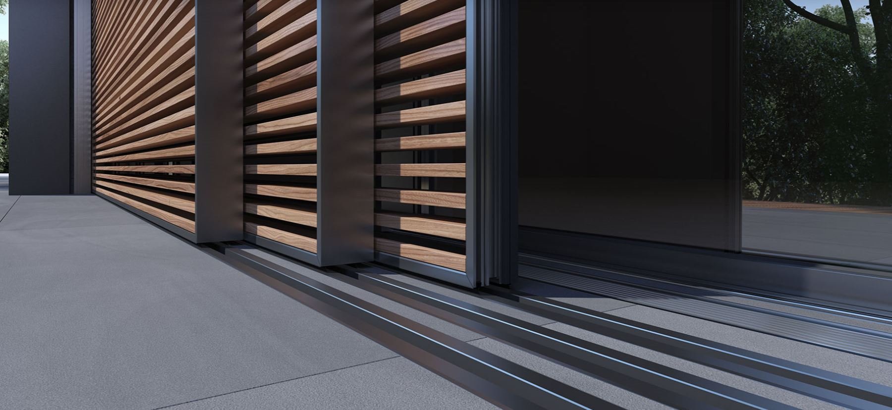 New and innovative solutions ideal for modern buildings with emphasis on aesthetics and functionality. Group of leaves in pairs can be operated electrically and manually. Systems moving panels can reach height of 5 meters covering thus the building slaps.