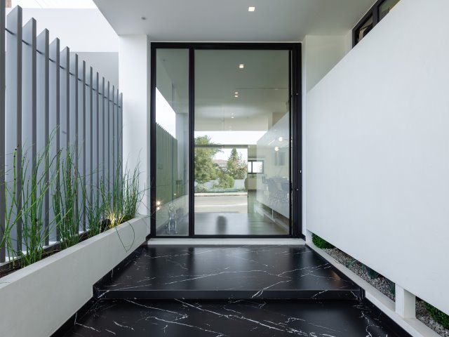 The front and rear door face is available in various finishes ranging from security glass, HPL panels, aluminum sheets, tile as well as natural wood