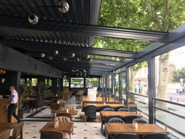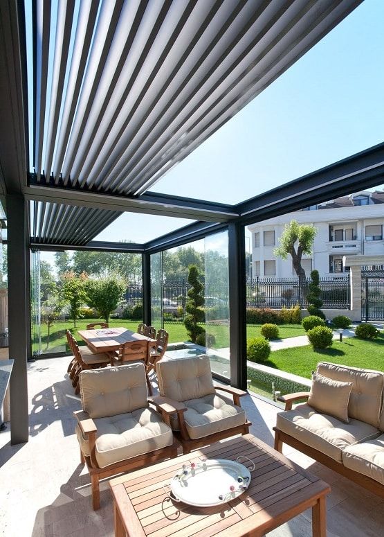 Designed to fit into any kind of outdoor living areas since it can adjust the shading on your terrace thanks to their fully automatic smart fins. It offers full protection from direct sunlight, allowing as much sunlight as desired and full opening. It enables the regulation of the natural ambient temperature when opened, and creates a fully enclosed water-resistant environment when fully closed. And it protects from all kind of weather conditions while providing exceptional quality of life in the open air with a high degree of visual and thermal comfort.