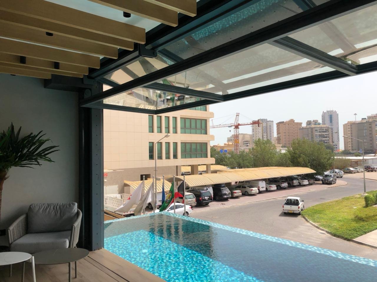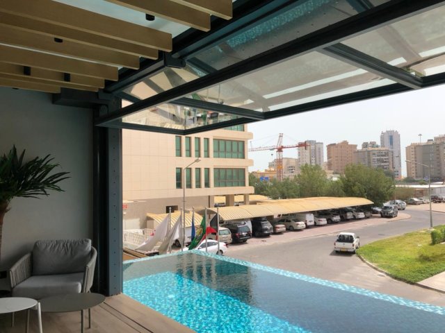The system is an ideal solution for projects where it is important to allow ease of passage through the shading system. Through its projection, while in the opened position, it can provide extra shading allowing more light to pass in the building while blocking direct sunlight.